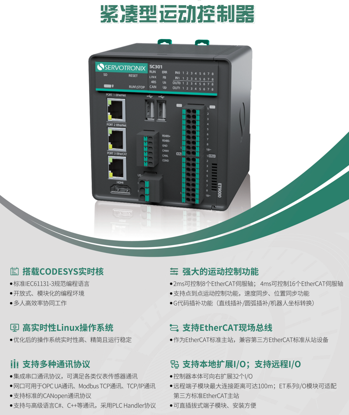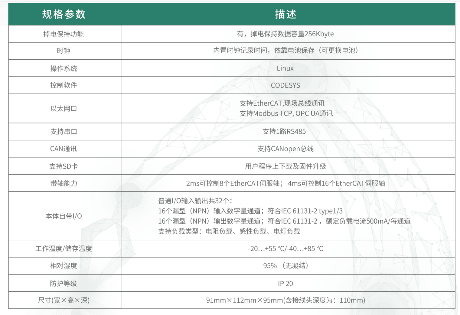 •PLCopen标准运动控制库;支持运动控制功能,如:点到点运动、电子齿轮功能/电子凸轮表功能、多轴插补(G代码)、机器人坐标转换等